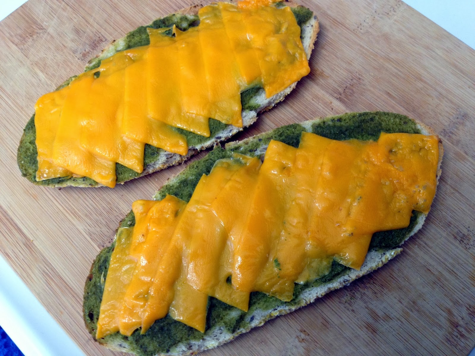 2. Divide cheese slices evenly for 4 slices of bread and arrange on top of the persillade on each slice of bread.